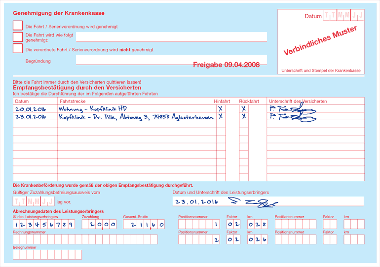 Das folgende Muster eines Krankenbeförderungsscheines soll Ihnen als Hilfe dienen.